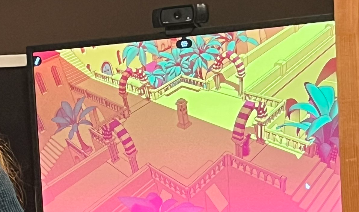 Z. erinnerte mich daran, dass ich eigentlich schon letzten Monat lobende Worte über Chants of Sennaar (2023, Rundisc) verlieren wollte. Gekauft hatte ich das in Frankreich entwickelte Computerspiel wegen der – mich an Moebius und Ligne-claire-Comics erinnernden – Grafik. Es durchzuspielen, war dann sehr viel vergnüglicher als gedacht – die Hauptperson startet in einem in Gelbtönen gehaltenen Tempel, muss ein paar einfache Puzzle lösen, um Wasser in die richtigen Kanäle zu lenken – um dann mit dem eigentlichen Inhalt des Spiels zu beginnen, nämlich dem Erlernen verschiedener Sprachen/Schriften. Dabei geht es um Begriffe und um eine einfache Grammatik. In den verschiedenen Leveln dieses an den Turm von Babel erinnernden Bauwerks ändert sich die Farbgebung und Ästhetik – und die recht realistisch gestalteten Sprachsysteme. Unterschiedliche Level übersetzend in Verbindung zu bringen, verändert den Turm selbst. Neben den Übersetzungspuzzles gibt es in den verschiedenen Ebenen auch Aufgaben, bei denen es notwendig ist, bestimmte Dinge zu finden und anzuwenden, oder sich in einem bestimmten Rhythmus anzuschleichen, um nicht gesehen zu werden. Und am Schluss stellt sich heraus, dass das Ende noch nicht das Ende ist, und die Auflösung des Geheimnisses dieses Turms komplizierter als gedacht ist. Wer Spaß an Logikrätseln und dem Erkunden eines geheimnisvollen Turms hat, dürfte mit Chants of Sennaar einige unterhaltsame Tage verbringen.